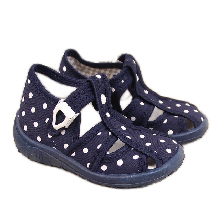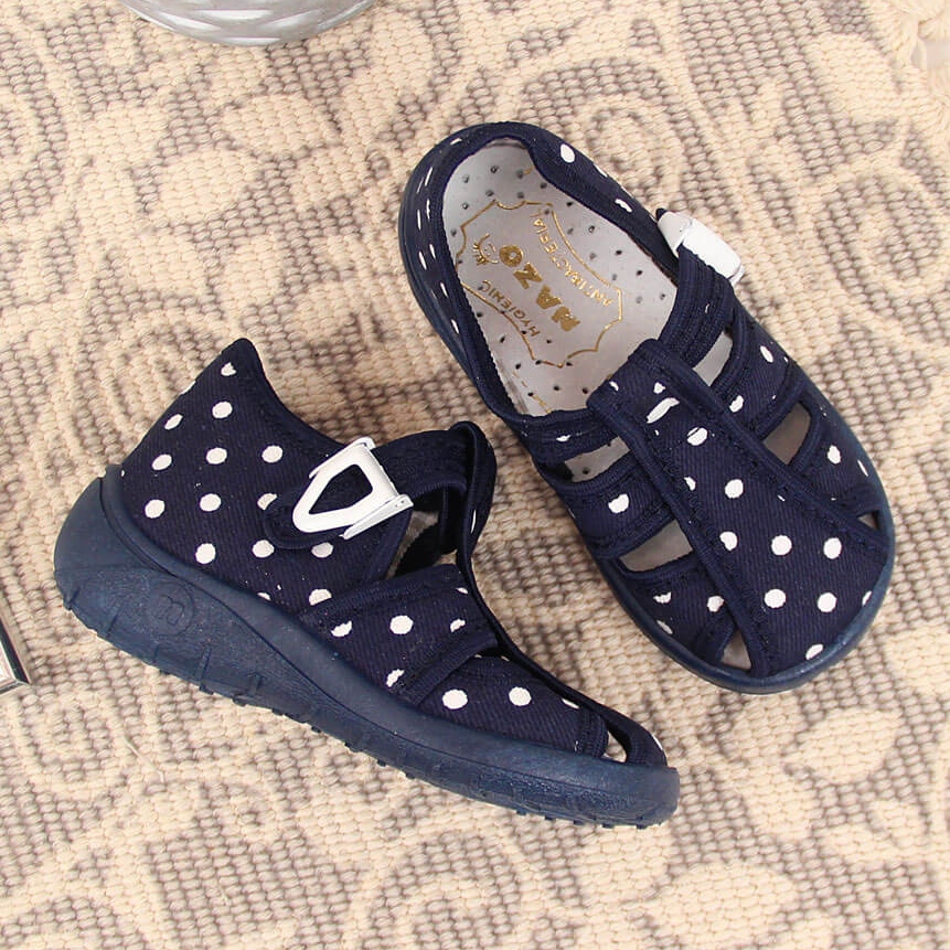 Nous proposons des pantoufles et des sandales pour la maison uniques pour filles du célèbre fabricant Nazo dans une jolie couleur bleu marine qui séduira sûrement tous les petits créateurs de mode. Ces jolies chaussures sont non seulement à la mode, mais aussi extrêmement confortables et saines pour vos pieds.
