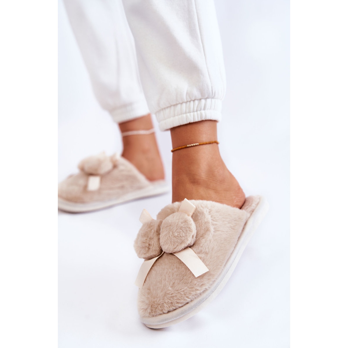 Détails: BM Chaussons Fourrure Femme Avec Pompons Beige Castello