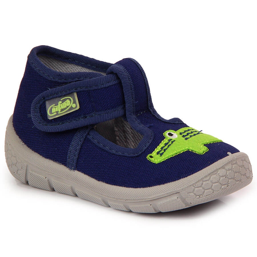 Befado Chaussons garçon à scratch avec alligator bleu marine Befado