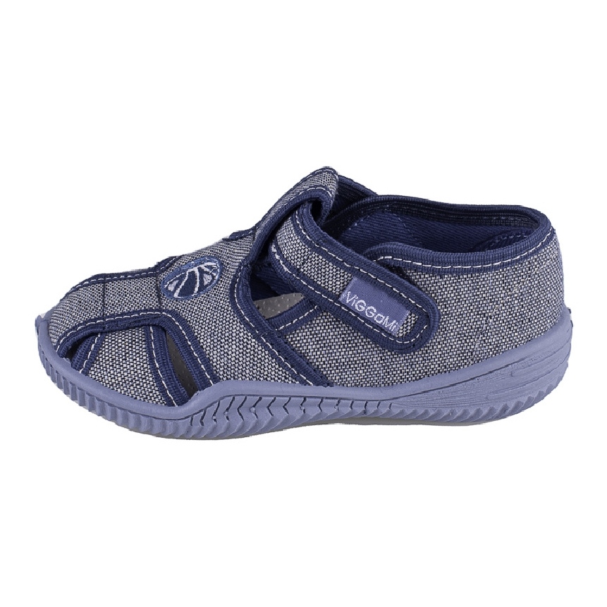 Slippers pour enfants pratiques et confortables Viggami Daniel dans une couleur gris universelle. Conçu pour une utilisation quotidienne - un talon solide, le fermeture scratch facilite la mise en place et l'installation, et la semelle en caoutchouc avec bande de roulement assure l'adhérence.