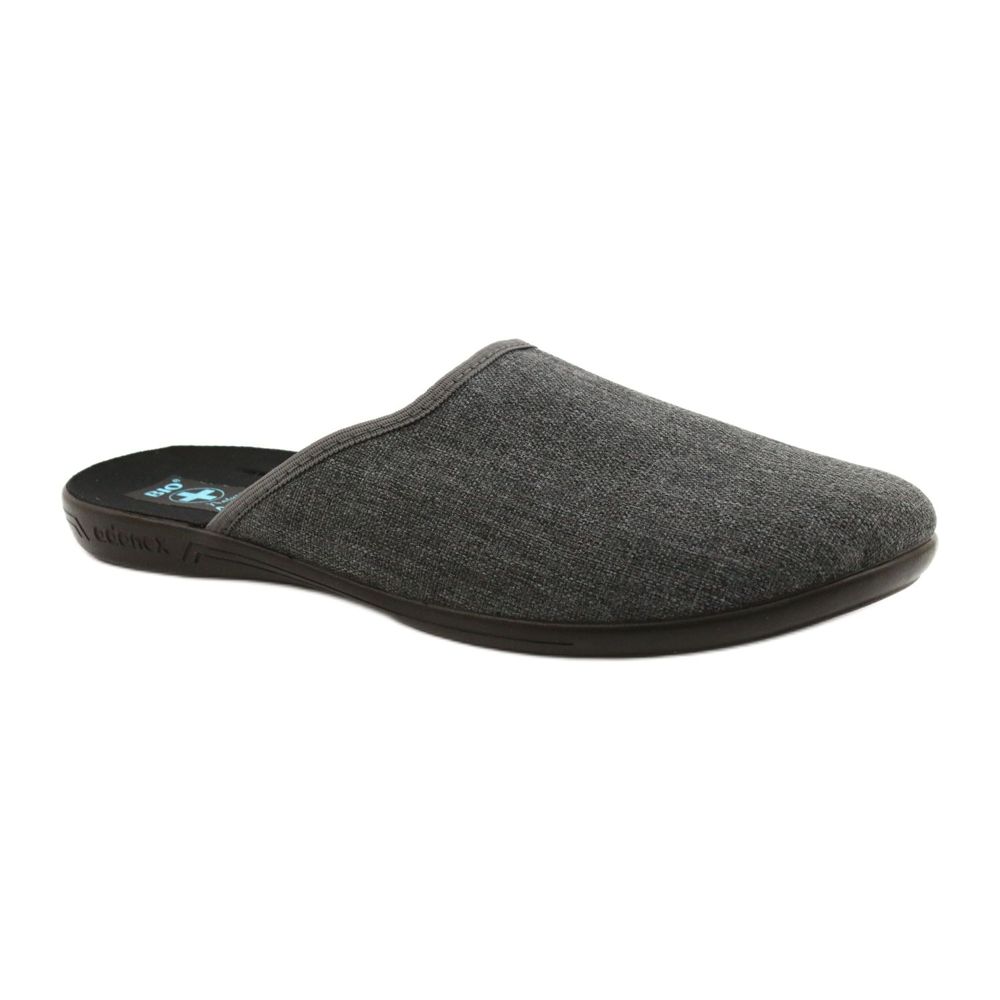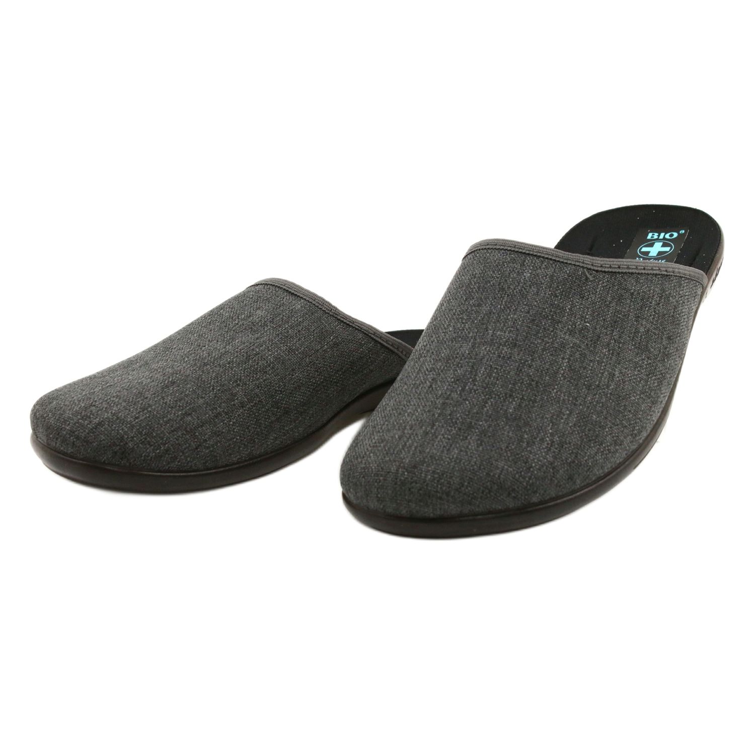 Les pantoufles masculines classiques et élégantes de la collection Bio Nature, modèle 24623. Fabriqué en tissu de haute qualité avec une structure en lin à une nuance modérée de gris, avec une semelle PU noire. Parfait pour la maison - léger, aéré et confortable dans un usage quotidien.