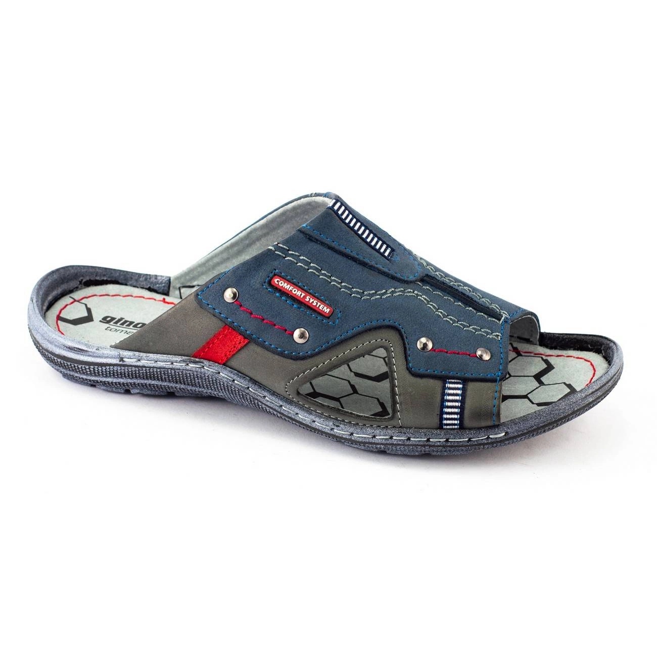 Flip -flops masculin 334GT - Solution d'été bleu marine, élégante et pratique. Fabriqués entièrement en cuir naturel, ils offrent une sensation agréable de marcher pieds nus tout en protégeant et en l'isolation du sol. Un design universel et simple fonctionnera à la fois pendant les voyages de vacances et comme des chaussures à domicile confortables ou pour les sorties le week-end.