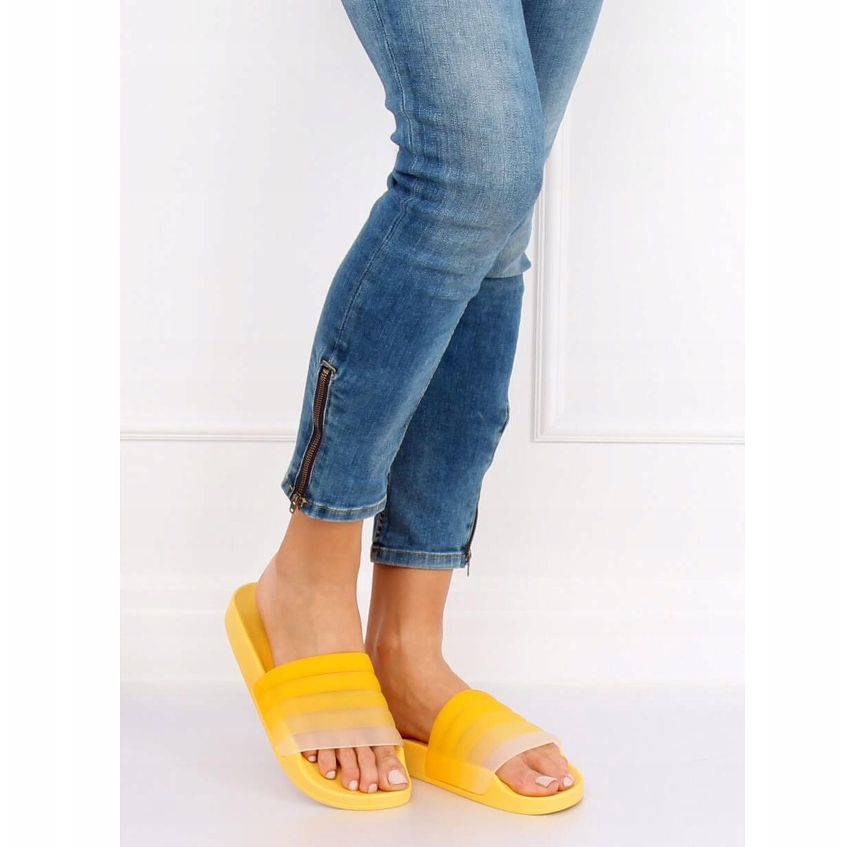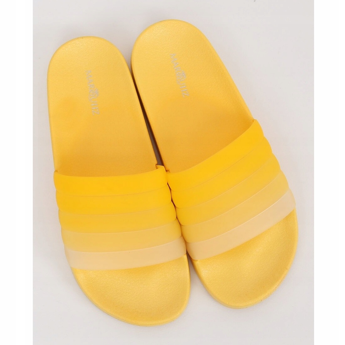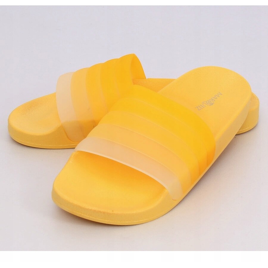 Nous vous présentons les chaussons pour femmes K-9183 dans une belle couleur jaune, parfaits pour les journées d'été ! Ces claquettes ombrées se distinguent par une large sangle de style ombré, qui non seulement est élégante, mais maintient également le pied en toute sécurité, assurant un confort de port.