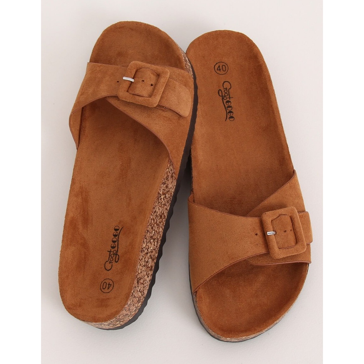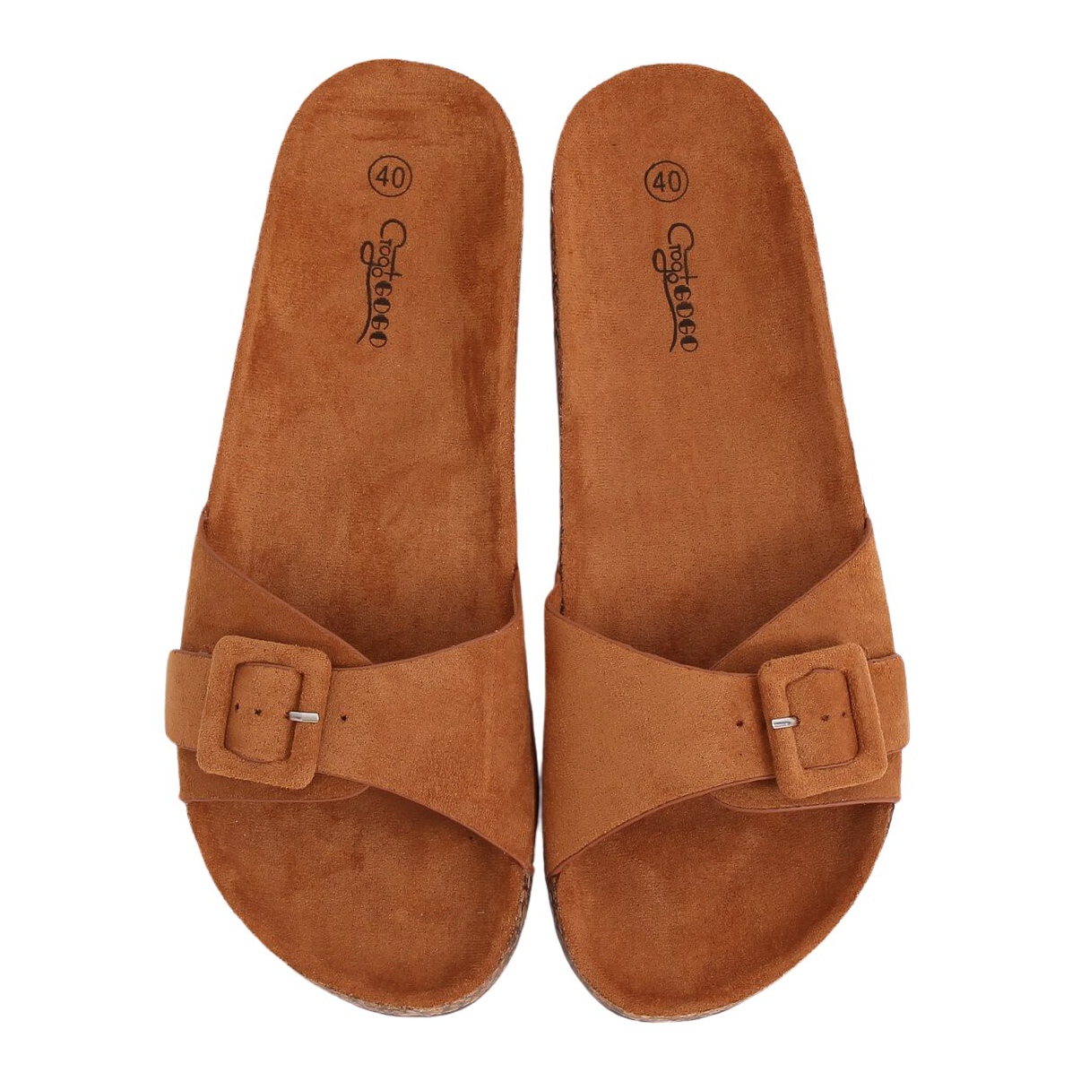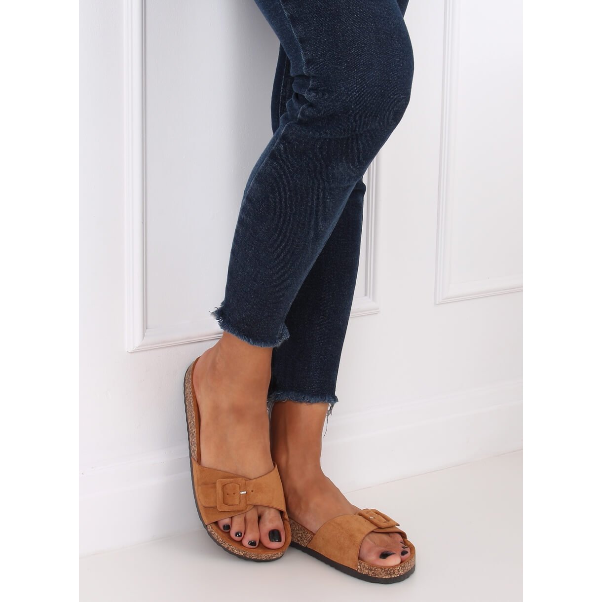 Inna marka Chaussons marron G-5026 Camel sur la semelle en liège brun