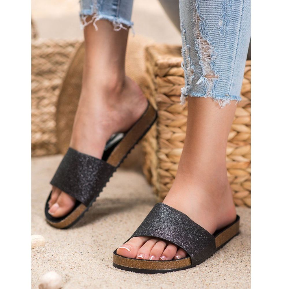 Ces tongs noires sont une solution parfaite au quotidien, s'adaptant parfaitement à la tendance de la mode décontractée et classique. Les matériaux utilisés garantissent le confort de port - la semelle intérieure en tissu et simili cuir s'adapte à la forme du pied, ce qui augmente considérablement le confort d'utilisation.