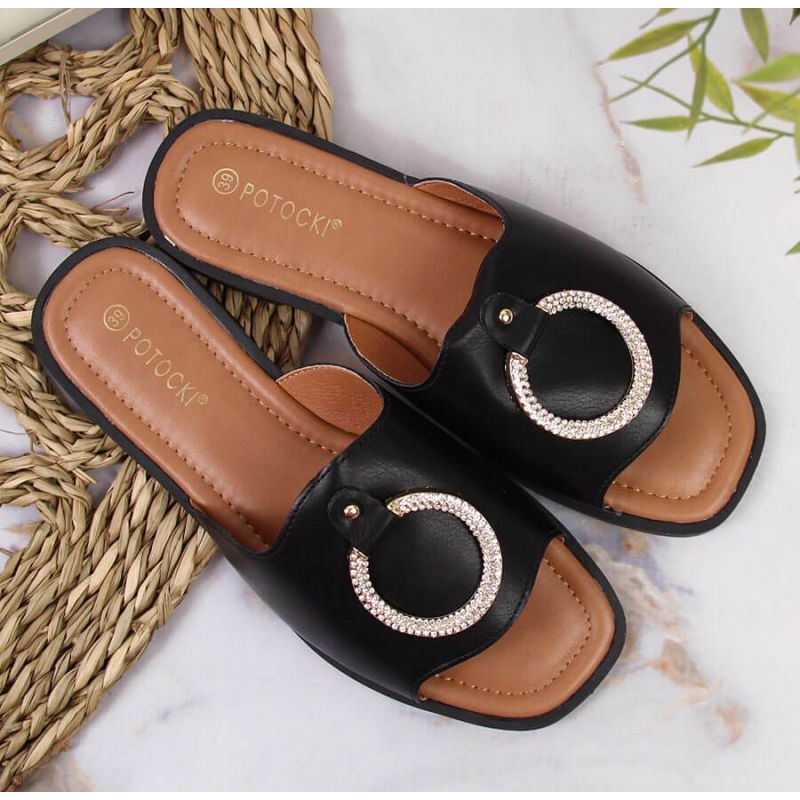 Détails: Chaussons noirs avec décoration Potocki W WOL74A le noir