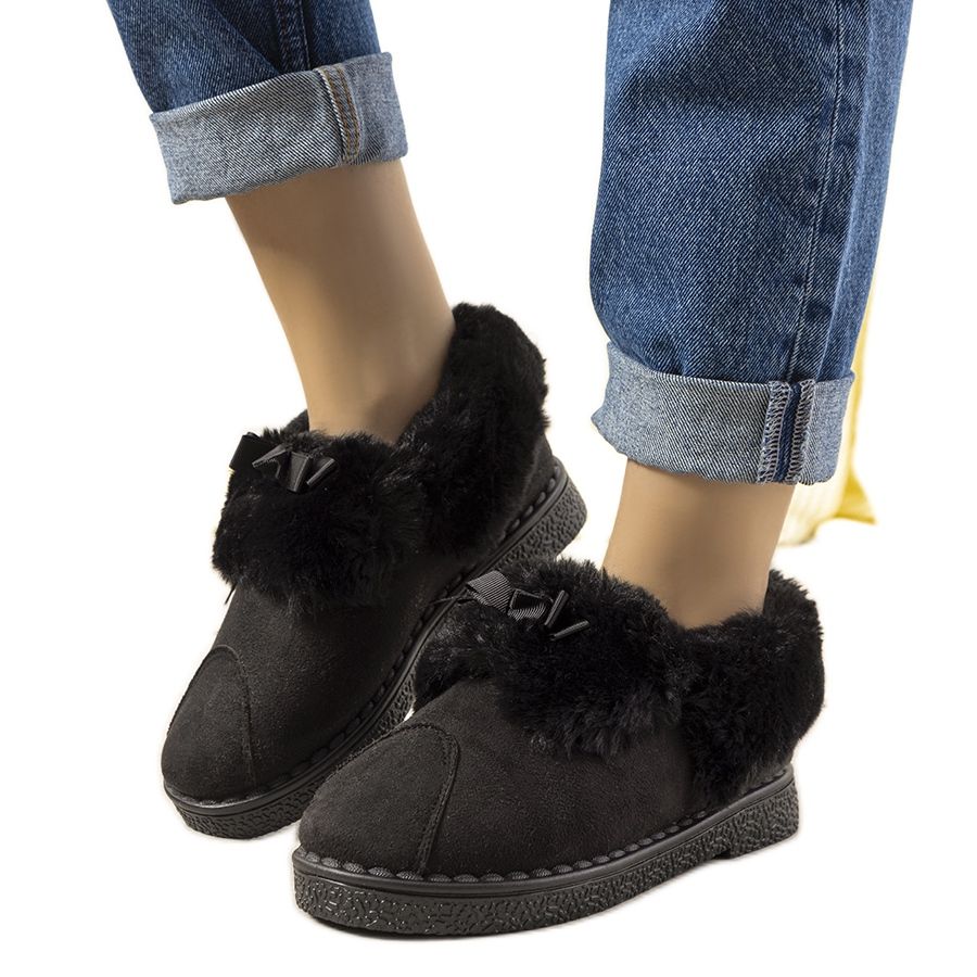 Chaussons noirs avec fourrure isolée Valle