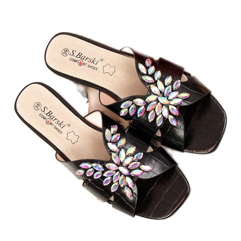 Détails: Chaussons noirs avec pierres S. Bararski W OLI104