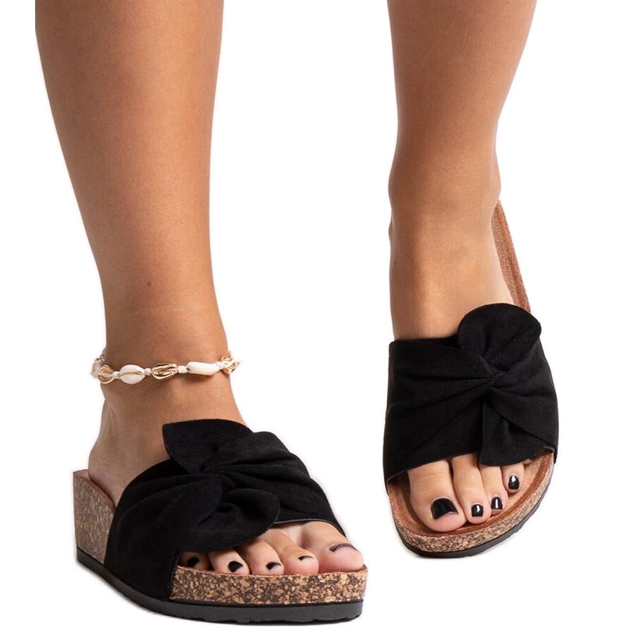 Détails: Chaussons noirs avec semelle compensée Ghaza en liège
