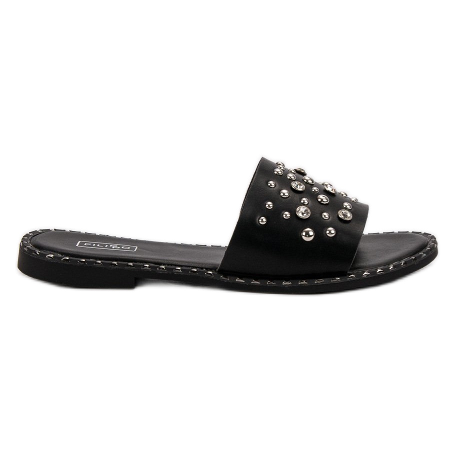 Filippo Filippo Chaussons Noirs Avec Strass le noir