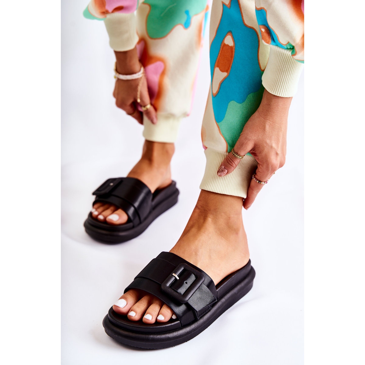 Découvrez l'élégance et le confort les jours d'été avec les chaussons noirs à boucles pour femme de Devia. Ces tongs classiques et à la mode, fabriquées en cuir écologique de haute qualité, sont un excellent choix pour les femmes qui recherchent des chaussures élégantes qui ne sacrifient pas le confort.