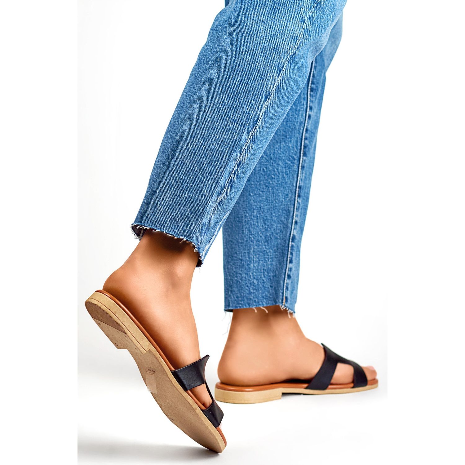Détails: Chaussons noirs pour femmes en cuir naturel