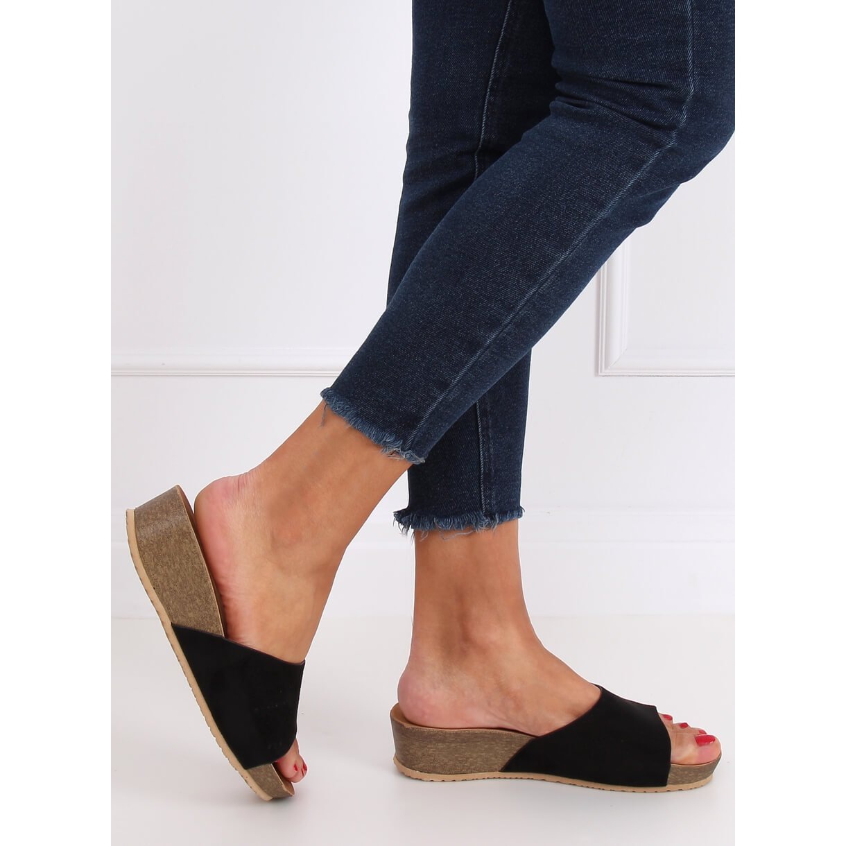 Inna marka Chaussons noirs sur un coin bas noir 10-238 Noir le noir