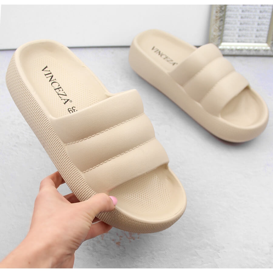 Vinceza Chaussons plateforme matelassés femme, beige Vinceza 75204