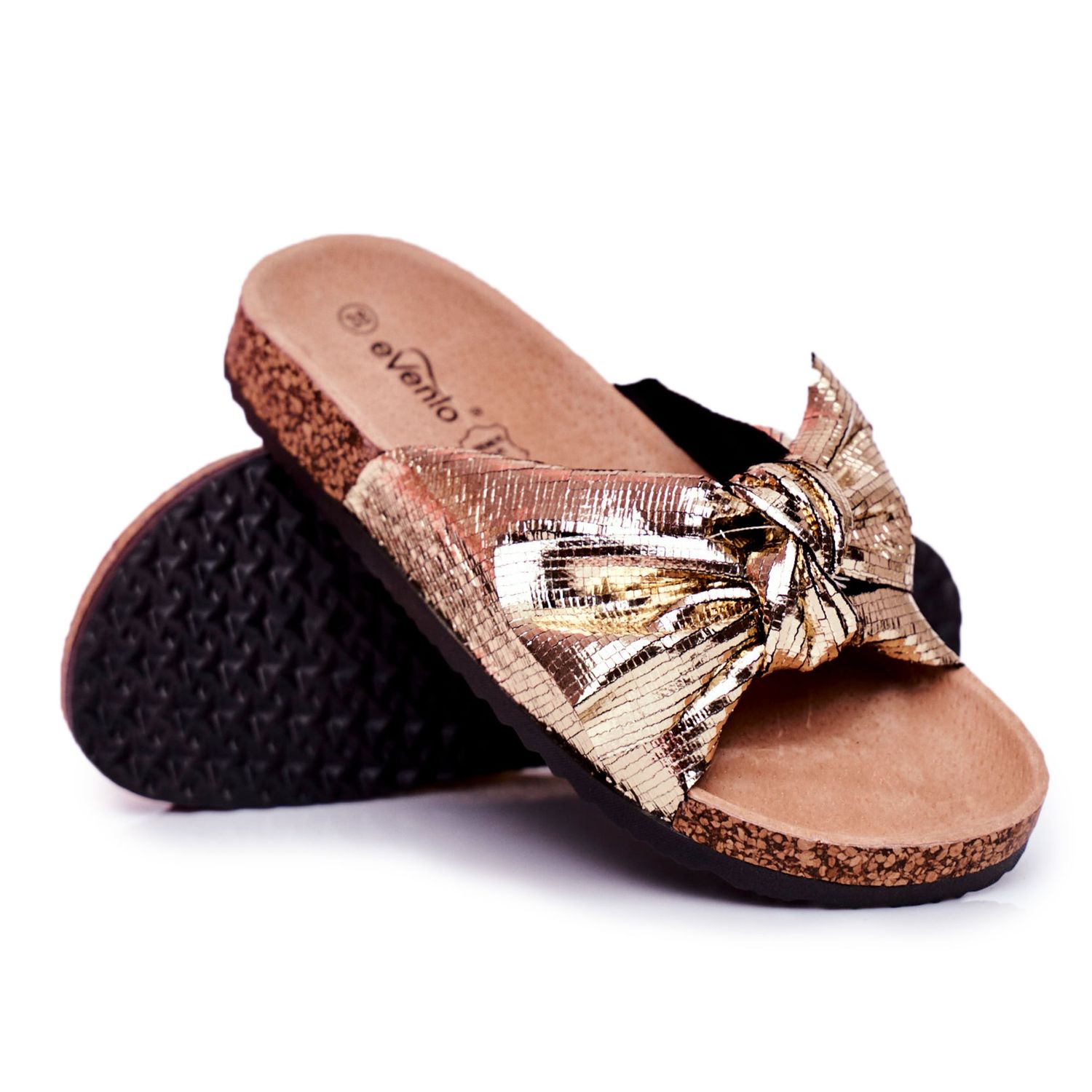 EVE EVE Chaussons pour femmes avec un grand nœud doré belle époque d'or