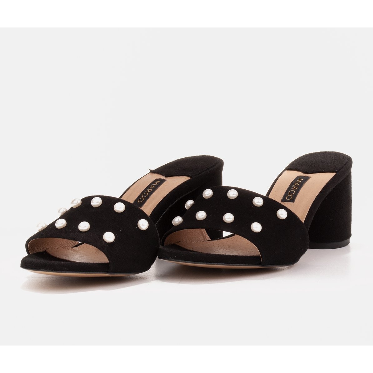 Le caractère élégant et subtil des tongs est donné par des détails originaux, tels que les strass, qui soulignent leur caractère unique avec un éclat subtil. Les tongs noires de Marco Shoes s'intègrent parfaitement dans les styles décontractés et plus formels, elles peuvent donc être portées à diverses occasions.