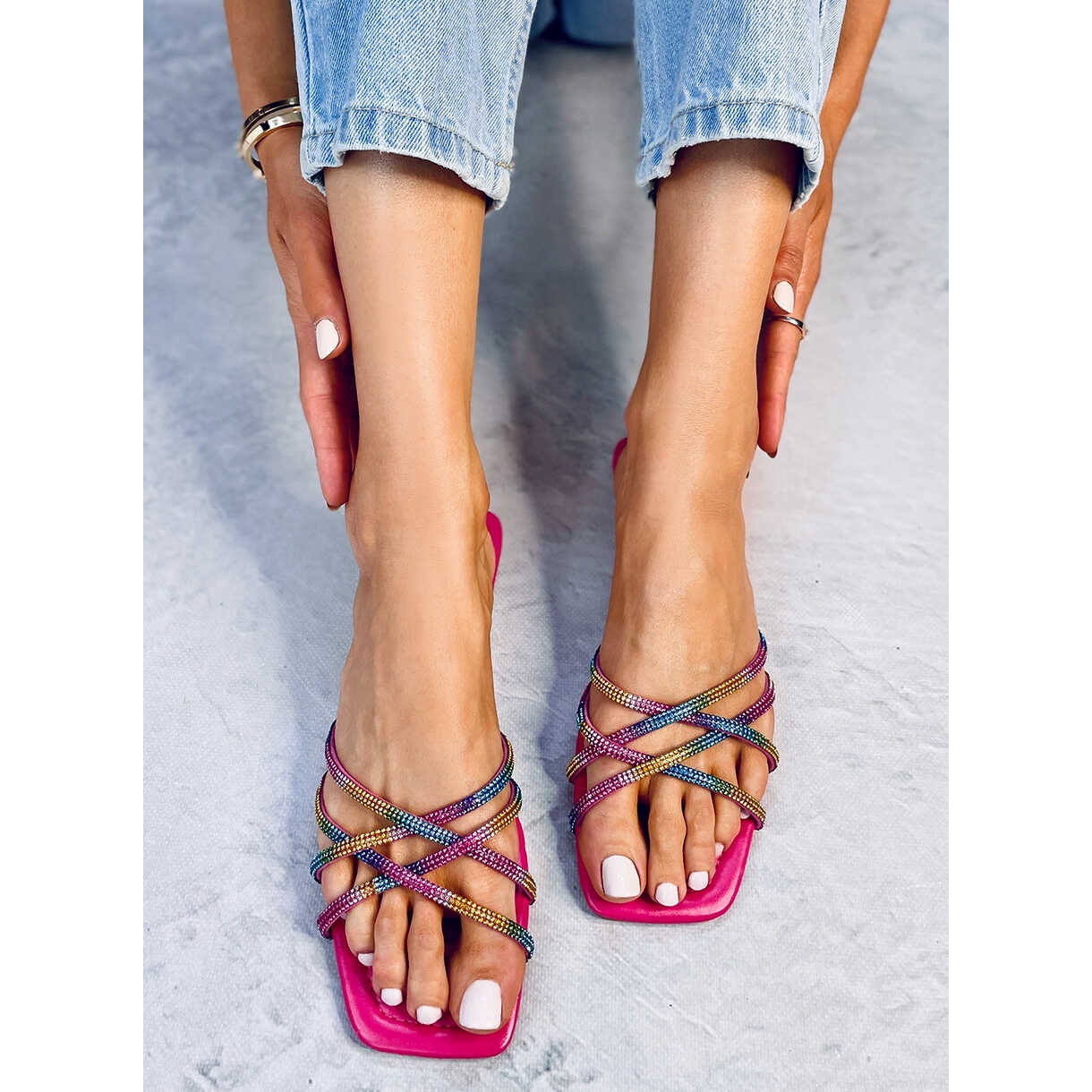 Ce ne sont pas n'importe quelles tongs : des strass accrocheurs brisent la monotonie et ajoutent une brillance unique. Jeune, sauvage et libre, voilà un slogan qui reflète parfaitement l'esprit de ces chaussures. Typiquement estival, n'ayez pas peur d'attirer l'attention - votre tenue deviendra plus expressive et vous deviendrez la star de chaque fête d'été.