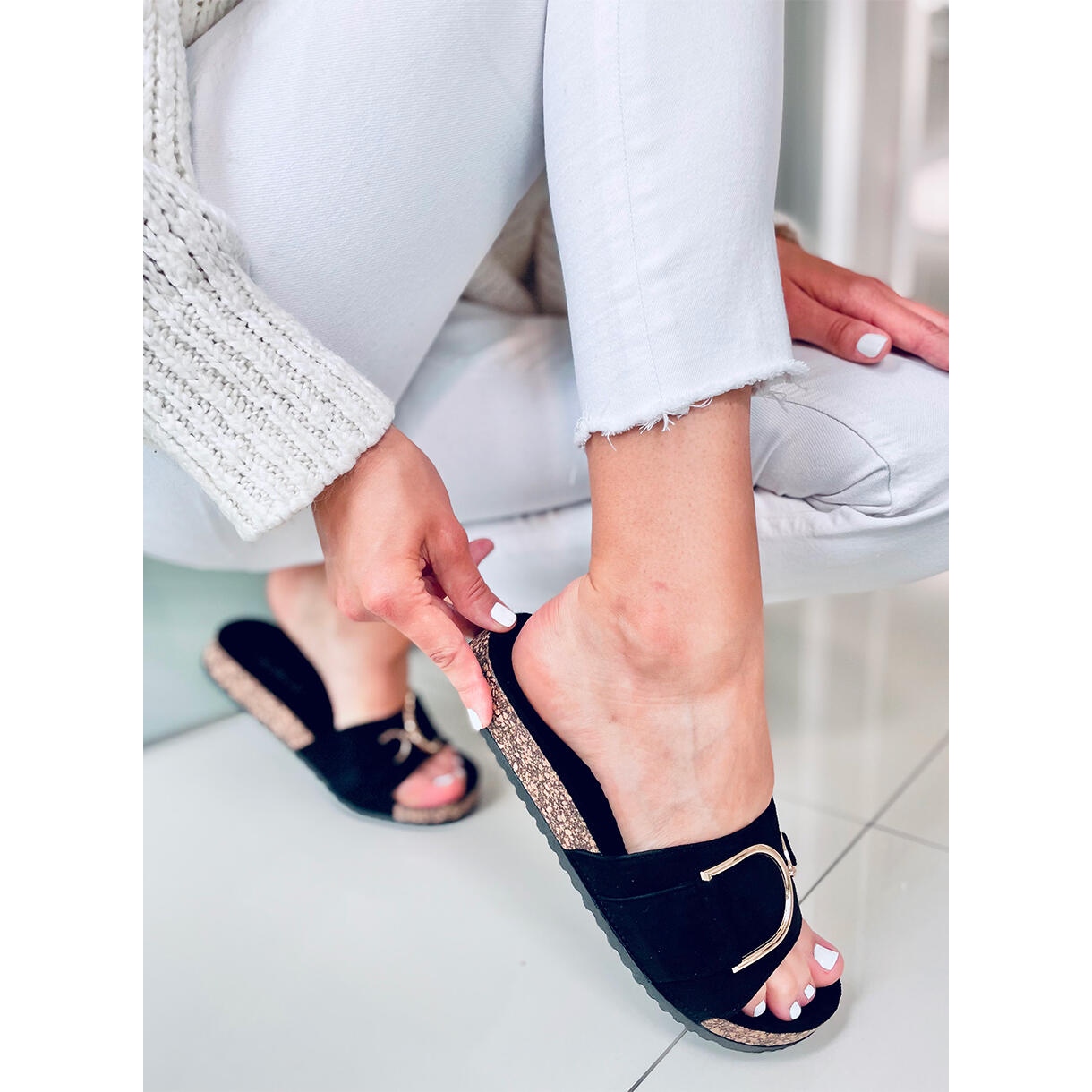 Détails: Chaussons semelle liège Tara Black le noir