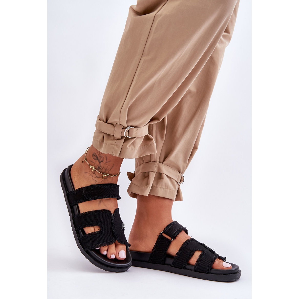 Les tongs du matériau fermeture scratch pour femmes - Lamirose (noir)
