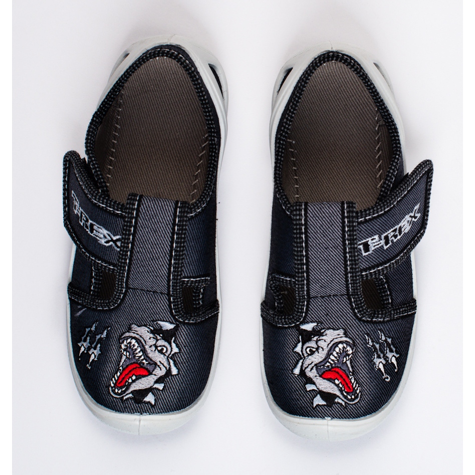 SHELOVET Chaussons velcro dinosaure 3F garçon noir