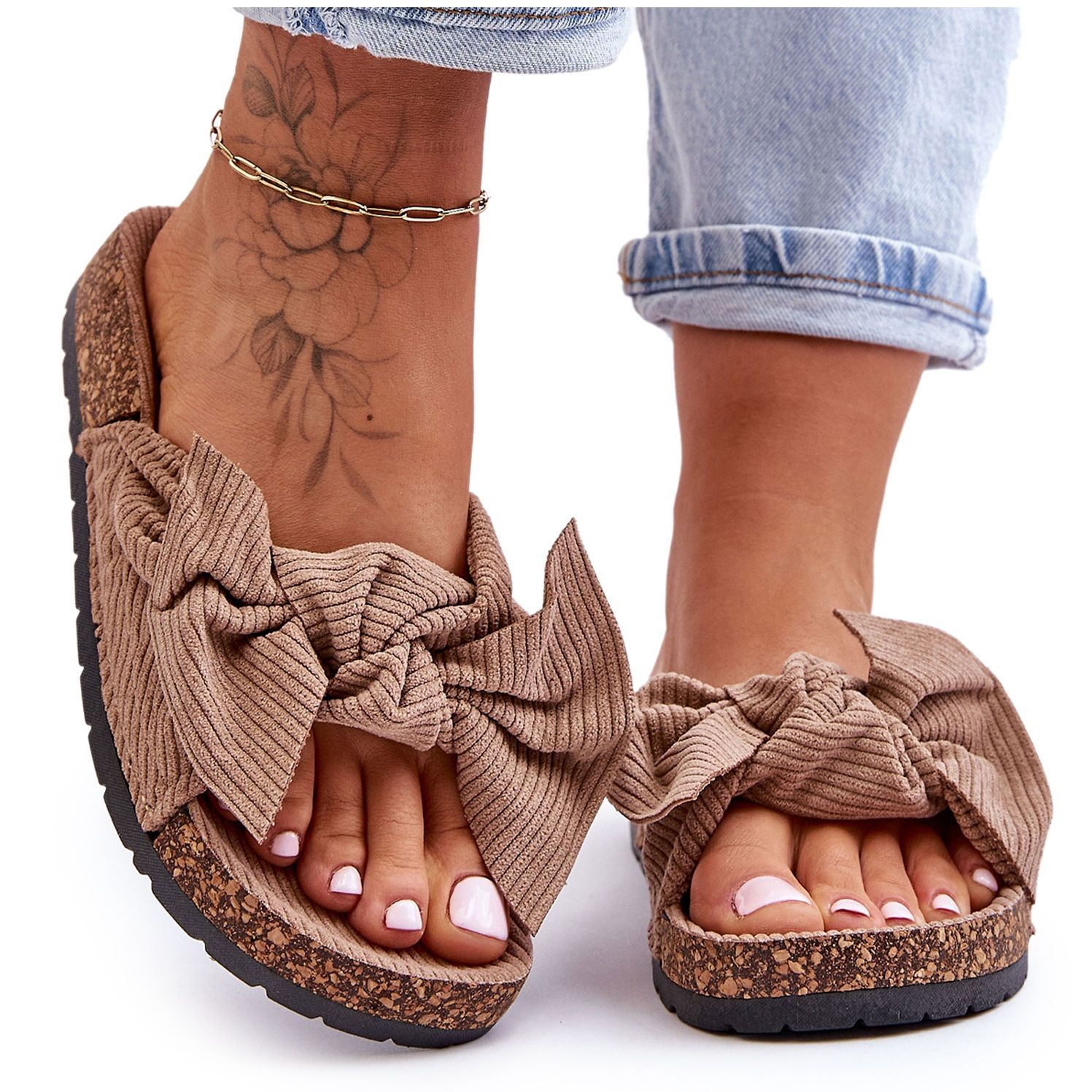 Inna marka Chaussons Velours Côtelé et Liège Summertime Beige Foncé
