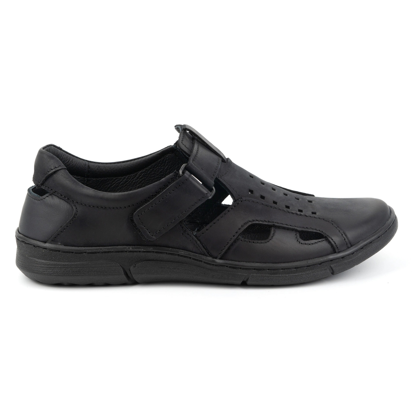 Olivier Olivier Chaussures à enfiler aérées en cuir pour hommes avec velcro 312KZ Noir le noir