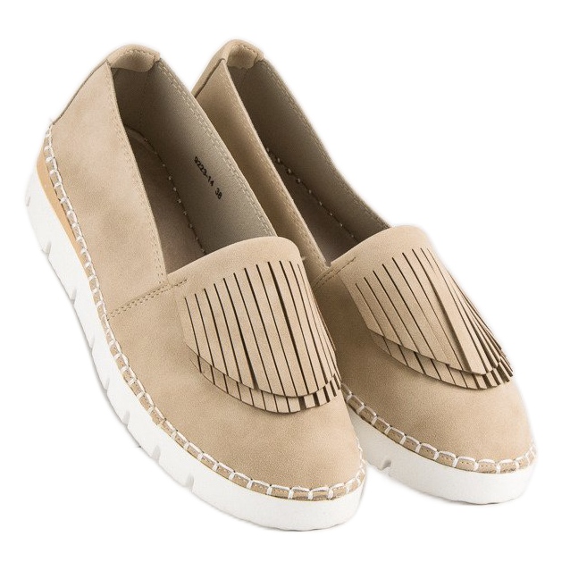 Le bout rond et le talon souple intégré offrent un soutien adéquat au pied, ce qui en fait un choix idéal pour les longues journées passées en mouvement. De plus, des franges subtiles ajoutent de la légèreté et de l'originalité, qui s'intègrent dans le style décontracté et mode.