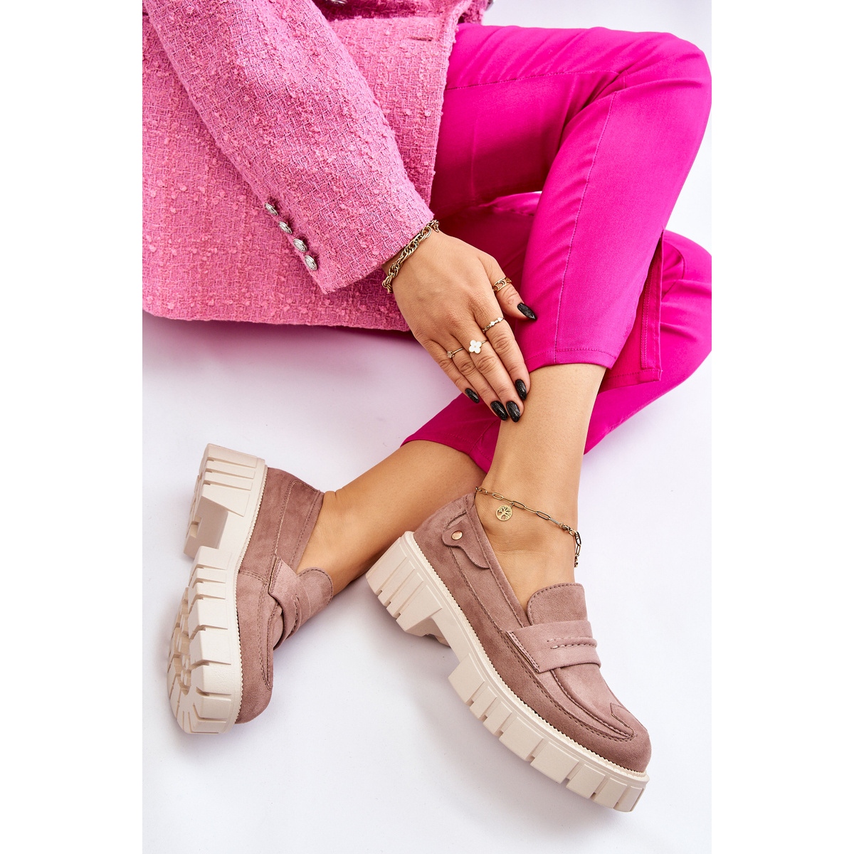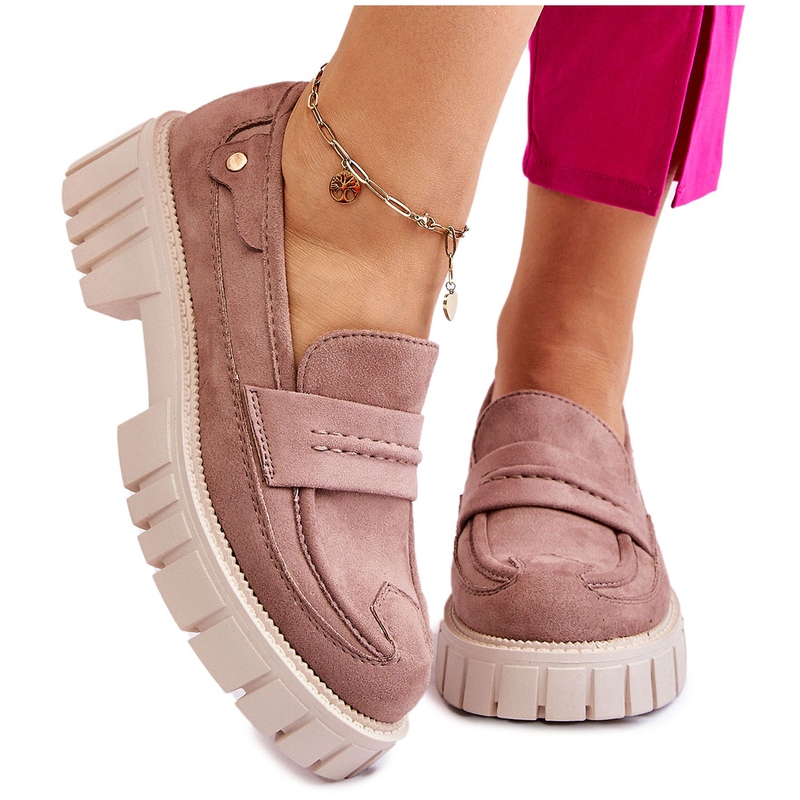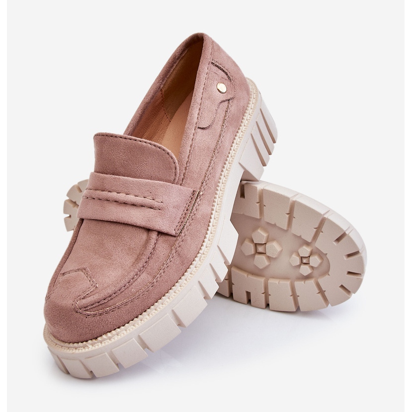 Élégant mocassin de fiorell en brun clair (DK.Beyge) est une combinaison d'une forme classique avec une finition moderne et massive. Fabriqués en cuir en daim écologique de haute qualité avec des ourlets subtils, ils attirent l'attention avec une sangle décorative à l'avant et un rivet métallique sur le côté de la tige. Un nez universel et rond et une texture lisse et uniforme font que les chaussures correspondent à la fois tous les jours et les stylisations plus élégantes.