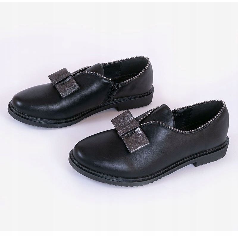 Nous vous présentons les phénoménales chaussures à enfiler noires BM Czarne 239-2, qui séduisent par leur élégance et leur design à la mode. Ces chaussures uniques se distinguent par un nœud subtil et des strass décoratifs qui leur confèrent un charme extraordinaire. Parfaites pour les femmes qui apprécient l'élégance et le confort, ces chaussures sont solides et durables, ce qui les rend résistantes aux dommages.