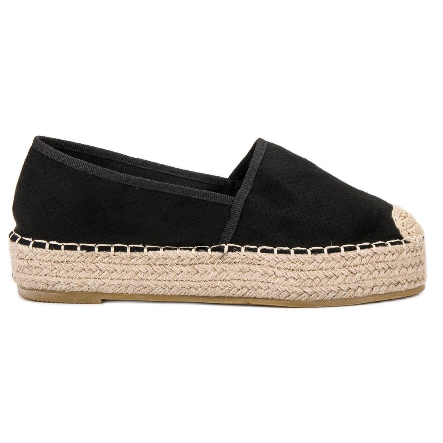 Fabriquées en tissu doux, ces chaussures vous invitent à les porter toute la journée. De plus, des rubans sur les bords leur confèrent un caractère subtil mais original. La plate-forme décorative de 3,5 cm de haut, décorée d'une légère ficelle tressée, attire non seulement l'attention, mais absorbe également parfaitement les marches, ce qui est extrêmement important lors d'une utilisation à long terme.