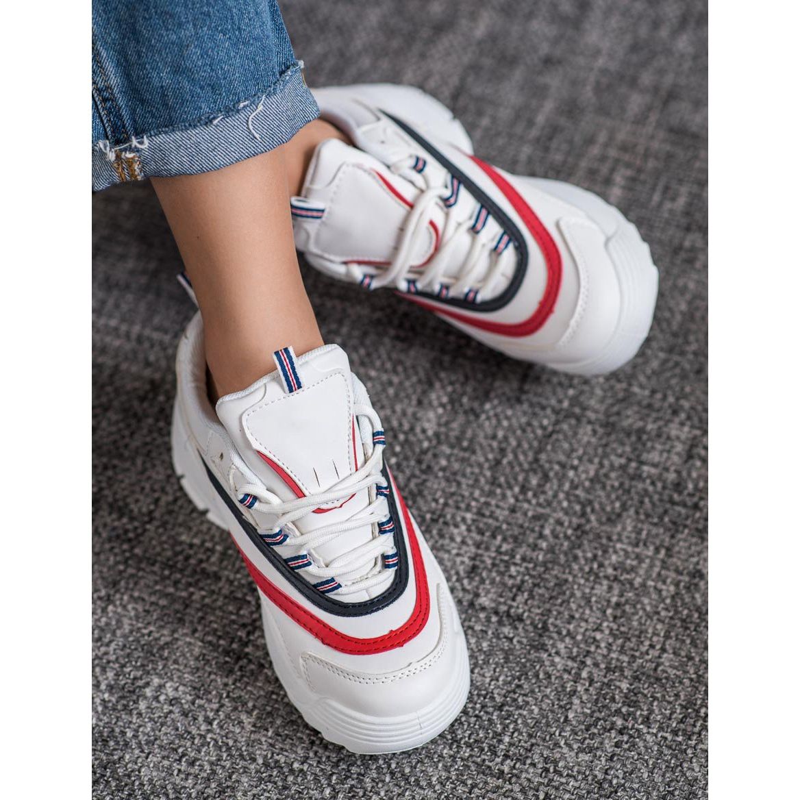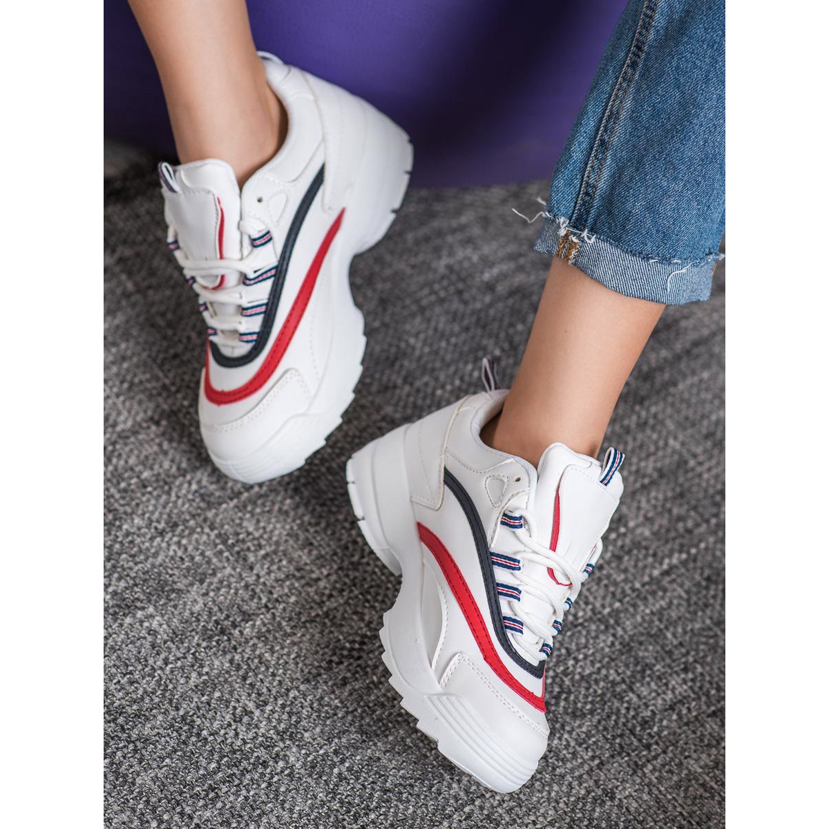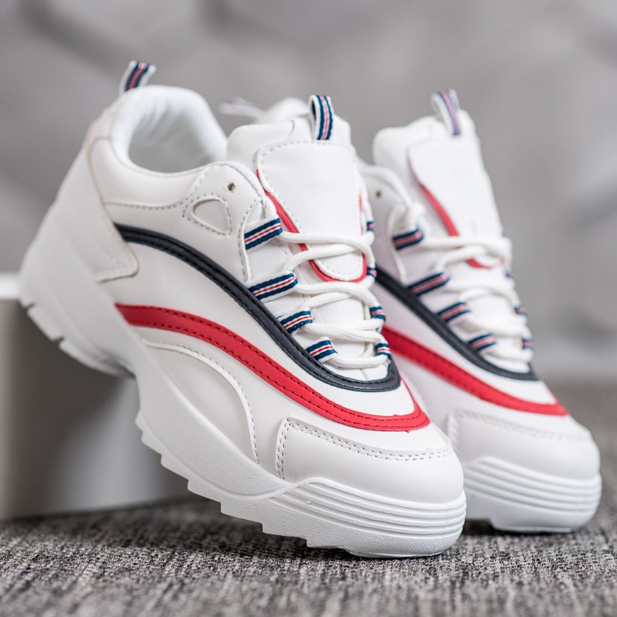 Découvrez les chaussures à plateforme à la mode Weide dans une couleur blanche classique, qui deviendront sûrement votre élément préféré de votre garde-robe. Ces baskets élégantes et sportives se distinguent par des jantes rouges et noires, qui leur donnent du caractère.