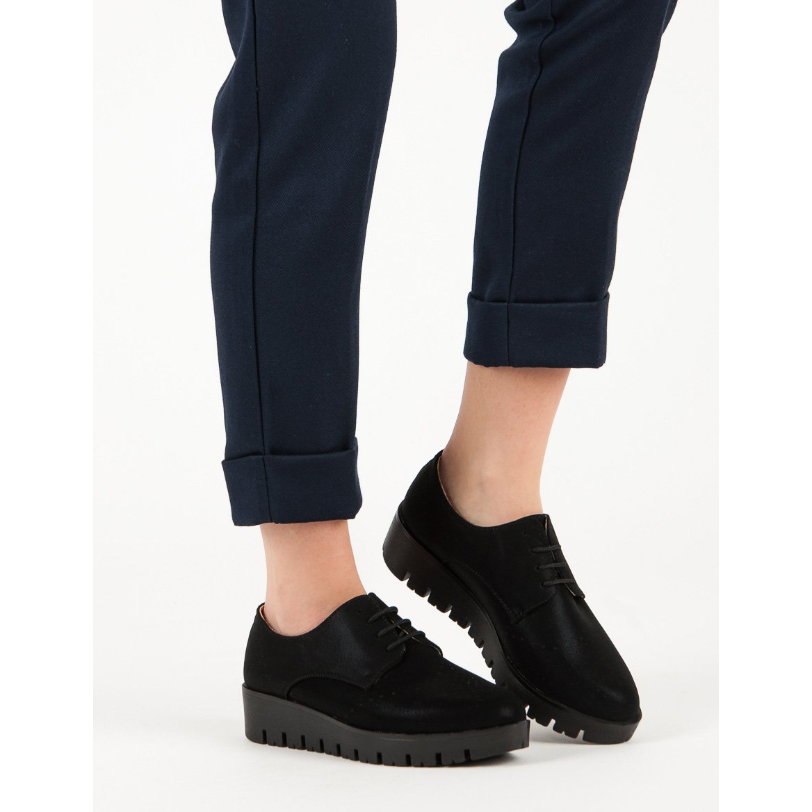 L'intérieur des chaussures est fini avec un insert en cuir, qui assure une ventilation adéquate et un confort de port tout au long de la journée. La fermeture à lacets permet un ajustement parfait au pied, ce qui est important tant en termes de confort qu'esthétique. Le bout rond ajoute du charme et la hauteur du talon de 4 cm rend ce modèle à la fois pratique et stylé.