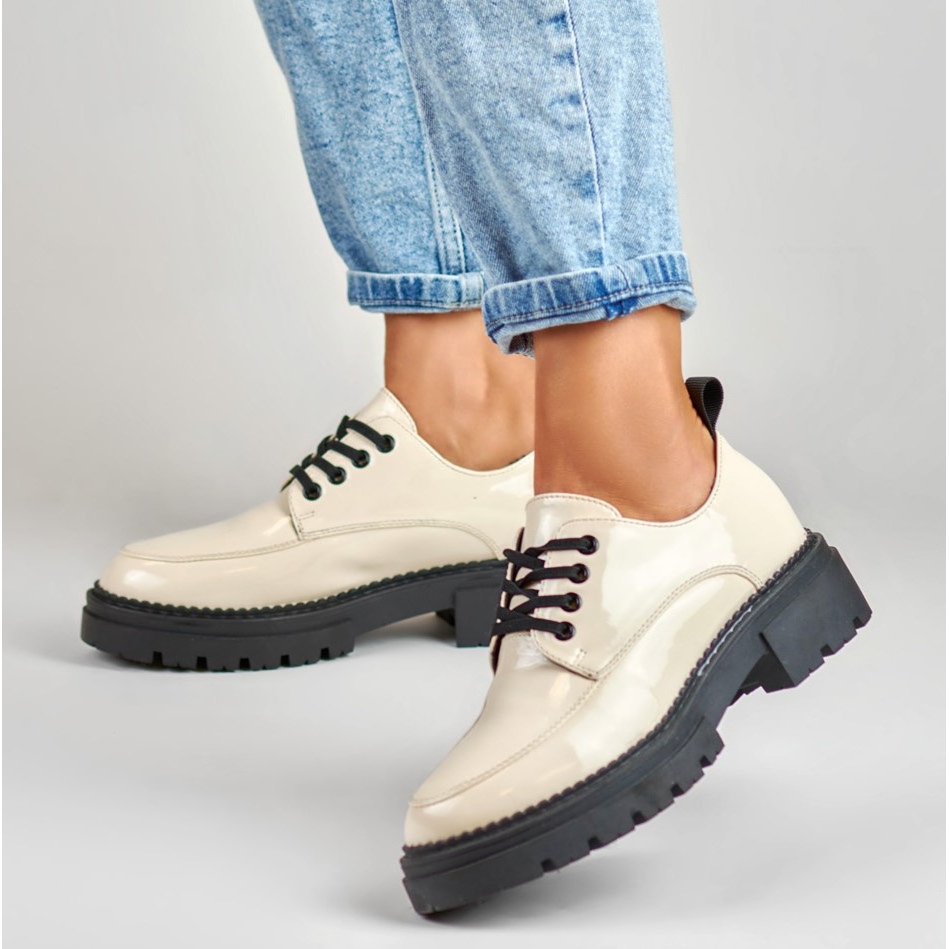 Détails: La.Fi Chaussures à lacets laquées beiges