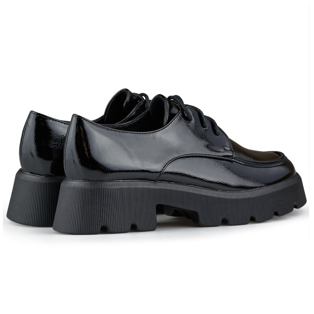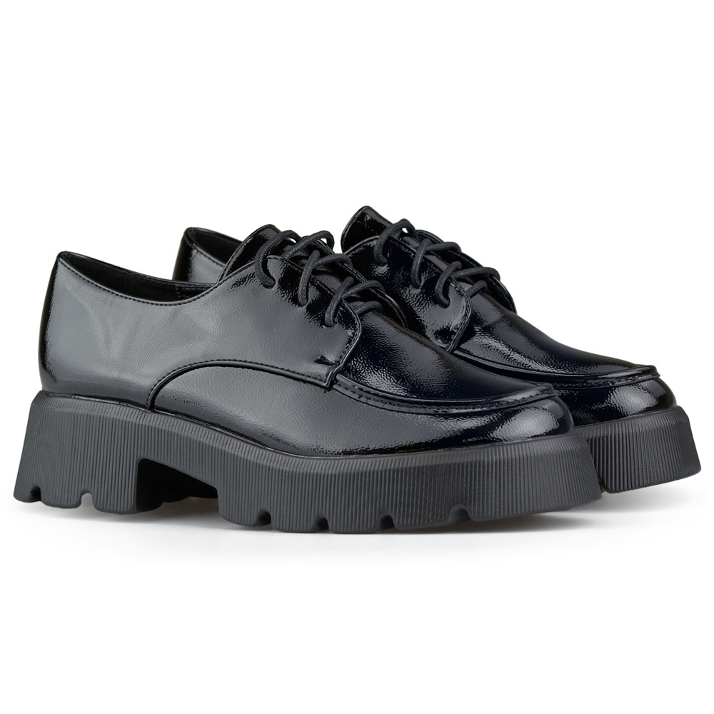 Détails: Chaussures à lacets noires vernies, chaussures pour femmes à semelle épaisse