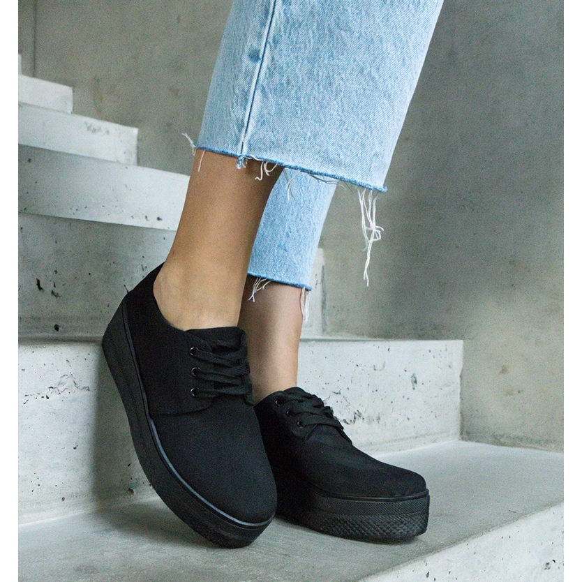 Les chaussures noires sur la plate-forme Lunde sont un incontournable dans la garde-robe de chaque femme. Ces chaussures élégantes sur une semelle de tracteur ajoutent non seulement le caractère de toute stylisation, mais offrent également un confort de port unique. Fabriqués en tissu de haute qualité, ils offrent du réconfort même pendant une longue journée. La hauteur et la plate-forme du talon sont de 5,5 cm, ce qui signifie qu'ils conservent l'élégance et la stabilité en même temps.
