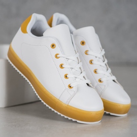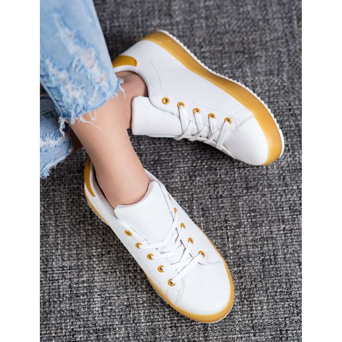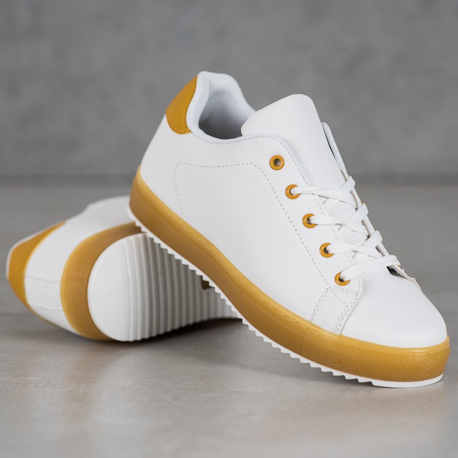Découvrez une nouvelle dimension du style sportif avec les chaussures SHELOVET en blanc, qui attirent l'attention grâce à la semelle et aux détails jaunes colorés. Ces chaussures à la mode sont le choix parfait pour les femmes qui apprécient à la fois le confort et l'apparence originale.