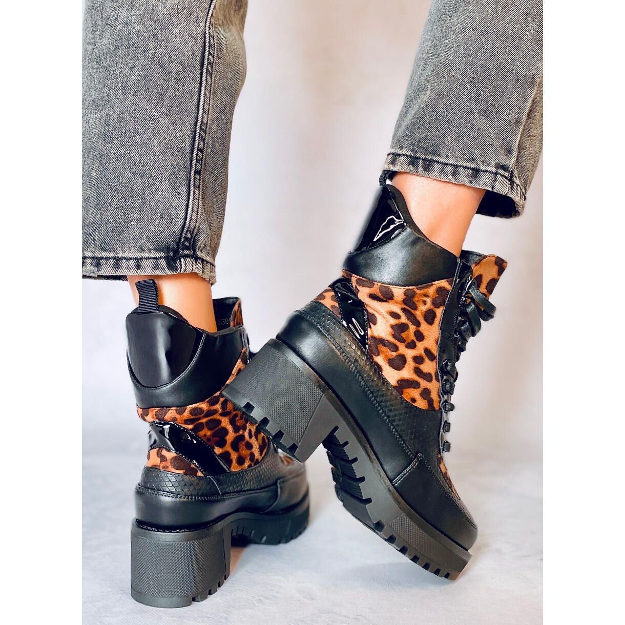 Découvrez un style et un confort uniques grâce aux bottines femme à semelle haute NS067 au motif léopard tendance. Ces bottines noires à lacets sont le choix parfait pour les femmes qui souhaitent se démarquer et suivre les dernières tendances de la mode.