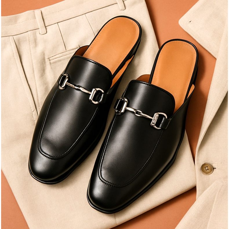 Les mules pour hommes en cuir à talon ouvert sont une proposition pour ceux qui apprécient l'élégance avec une touche de liberté. Le plus souvent, ils font référence au style des mocassins ou des moines, mais sans talon. Fabriqués en cuir lisse ou embossé, ils peuvent avoir une boucle, des coutures décoratives ou une forme minimaliste. Ils s'associent parfaitement aux costumes d'été, aux vestes en lin, aux chinos et aux chemises. C'est un choix pour les hommes courageux qui apprécient la simplicité italienne et une interprétation moderne des classiques.