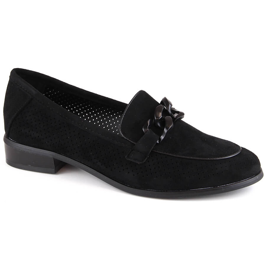 Les chaussures à talons hauts ajourées en daim pour femmes, noires Potocki SZ12052, sont une proposition idéale pour les femmes qui apprécient l'élégance et le confort au quotidien. Ces mocassins élégants de la célèbre marque Potocki allient un design moderne à une finition de haute qualité.