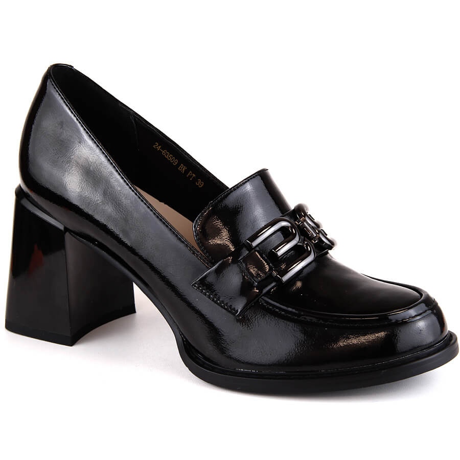 Les chaussures à talons hauts en cuir verni noir pour femmes Vinceza 63509 sont un excellent choix pour les femmes qui apprécient l'élégance et le confort. Fabriquées en cuir naturel de haute qualité, ces chaussures élégantes séduisent par leur couleur noire intemporelle, parfaite pour diverses combinaisons, aussi bien décontractées que formelles.