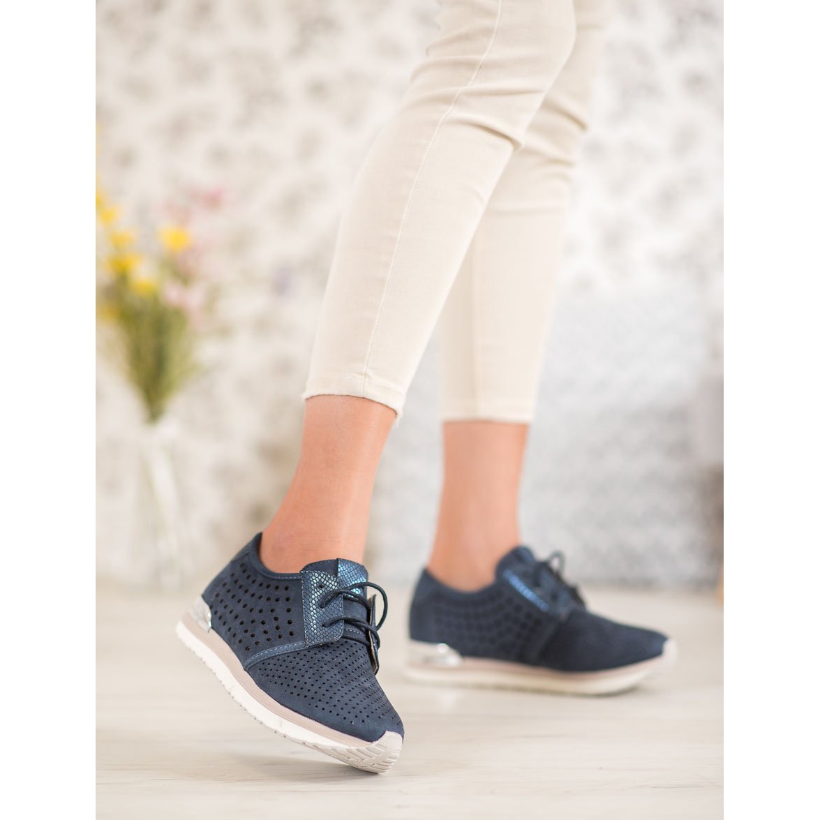 Nous vous présentons les chaussures ajourées bleu marine de la marque Aclys - le choix parfait pour les femmes qui apprécient le confort et le style. Ces chaussures de sport d'une élégante couleur bleu marine se distinguent par un motif ajouré qui non seulement leur donne du caractère, mais assure également la respirabilité, ce qui en fait un choix parfait pour la saison printemps et été.