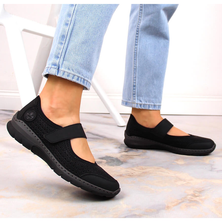 Rieker Chaussures ajourées confortables pour femmes avec velcro noir Rieker L32B5-00 le noir