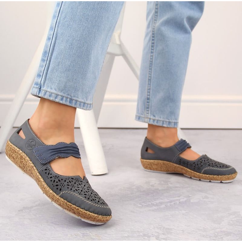 Détails: Chaussures ajourées en cuir bleu Rieker W RKR648