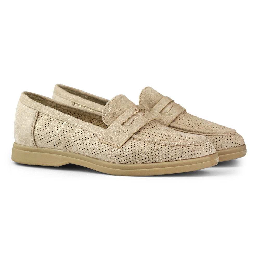 Détails: Chaussures ajourées pour femmes avec un brillant doré beige