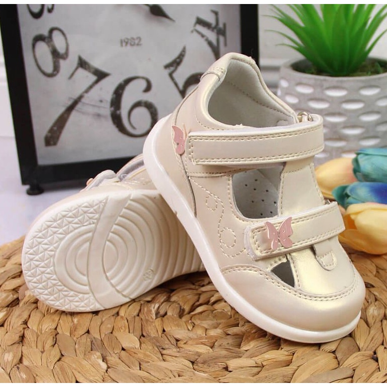 Détails: Chaussures ajourées velcro American Club Jr AM892A or d'or