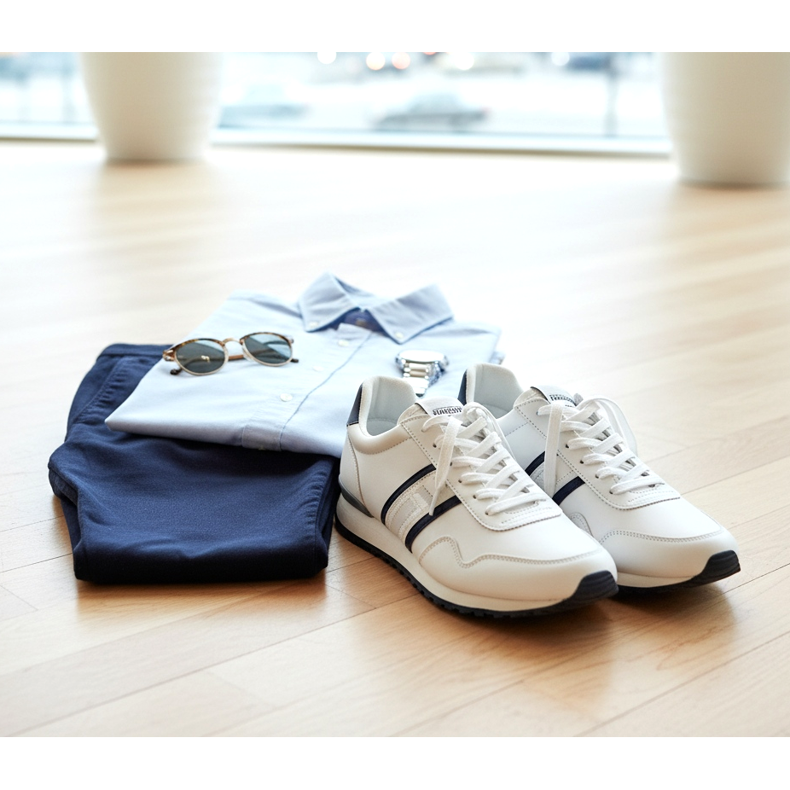 Absolument! L'athleisure masculin est régi par des principes similaires à celui des femmes, bien qu'il ait sa propre spécificité. La base ici est la combinaison de chaussures de sport avec un chino classique ou un pantalon structuré. Les baskets fines blanches ou grises se marient parfaitement avec un pantalon chino bleu marine foncé et une simple chemise en coton – un look qui fonctionnera aussi bien dans un bureau avec un code vestimentaire libéral que lors d'une promenade le week-end.