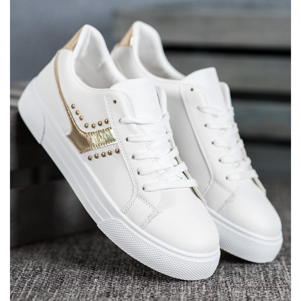 Les chaussures à lacets SHELOVET avec décoration dorée en blanc sont une proposition idéale pour les femmes qui apprécient la combinaison de style et de confort. Ces chaussures de sport modernes sont parfaites aussi bien pour un usage quotidien que pour les activités de plein air.