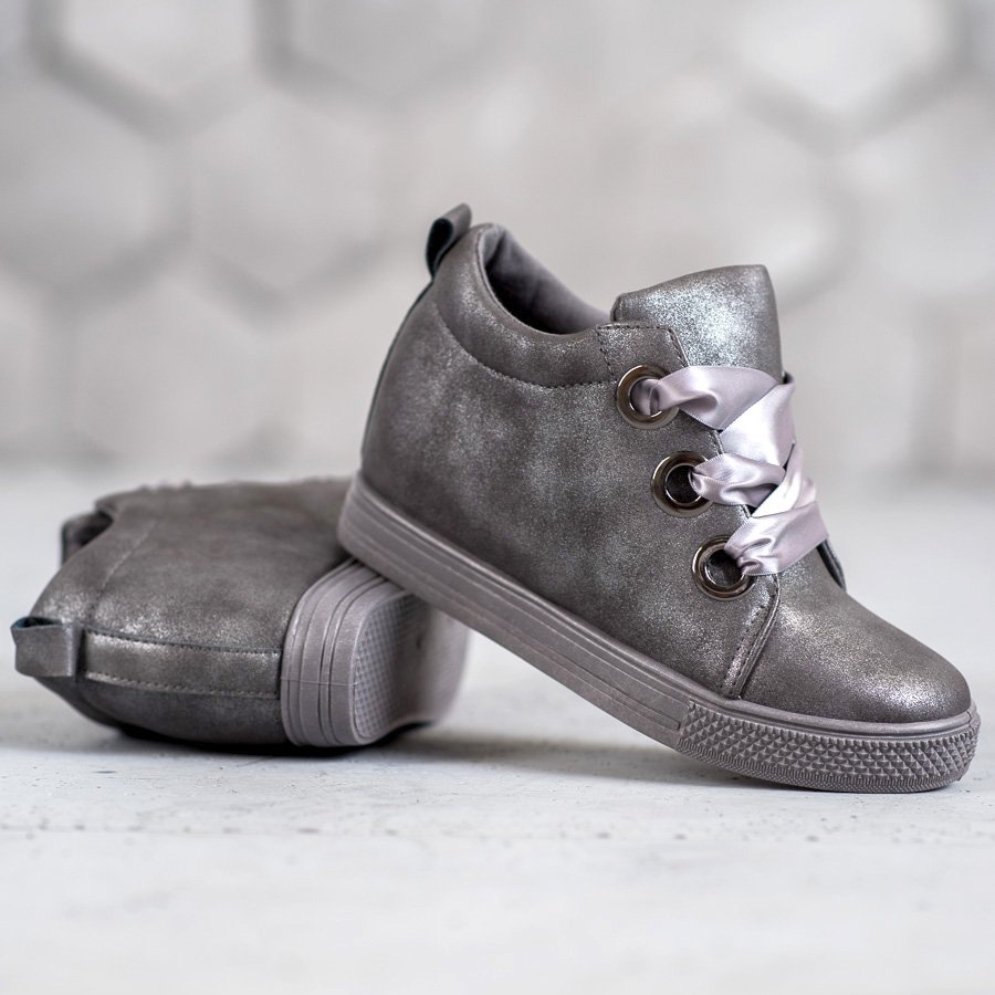 New Tlck New Tlck Chaussures attachées avec un ruban gris