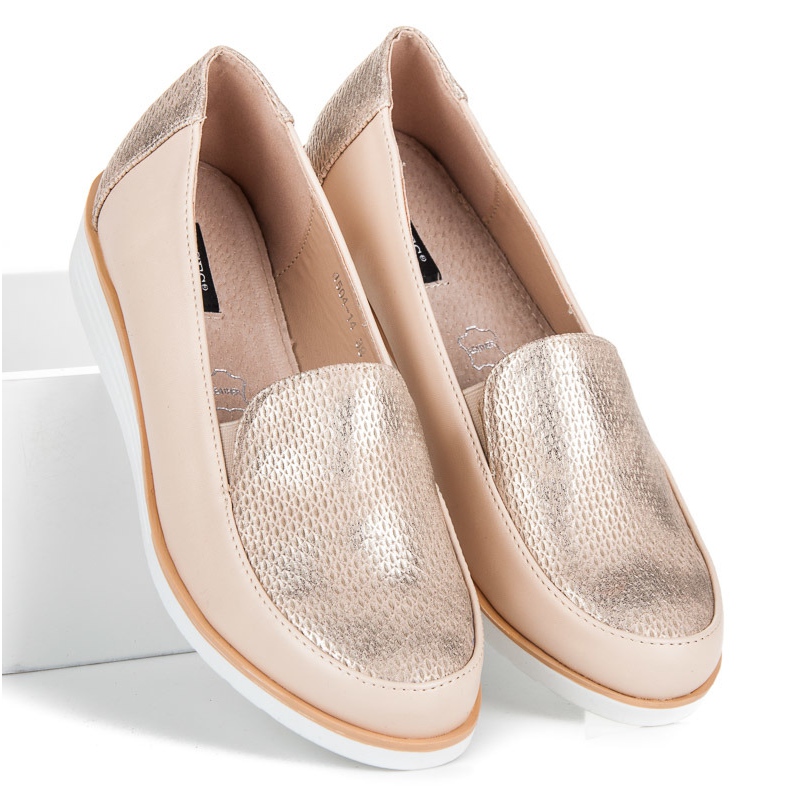 Les chaussures à motifs VICES marron sont un choix idéal pour les femmes qui apprécient le confort et le style dans les tenues de tous les jours et de soirée. Ces chaussures élégantes sont fabriquées en cuir écologique de haute qualité, ce qui les rend non seulement esthétiques, mais également respectueuses de l'environnement. L'intérieur des chaussures est rempli de cuir naturel, assurant un confort de port tout au long de la journée.
