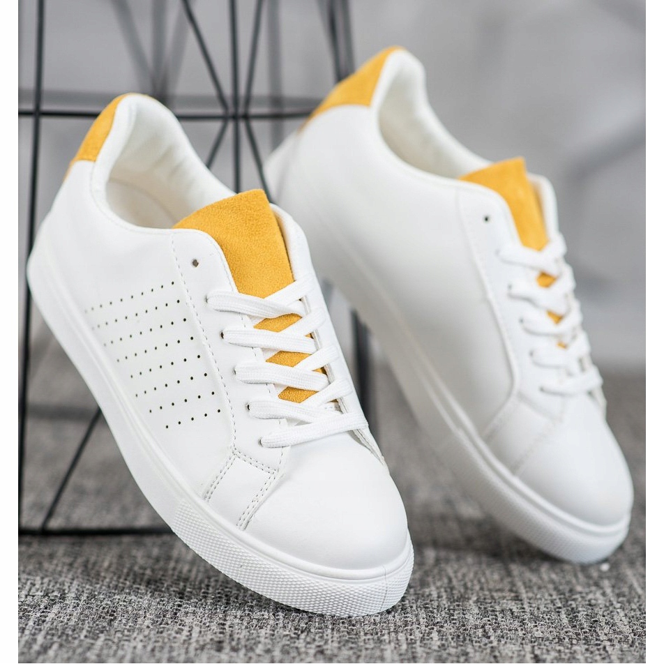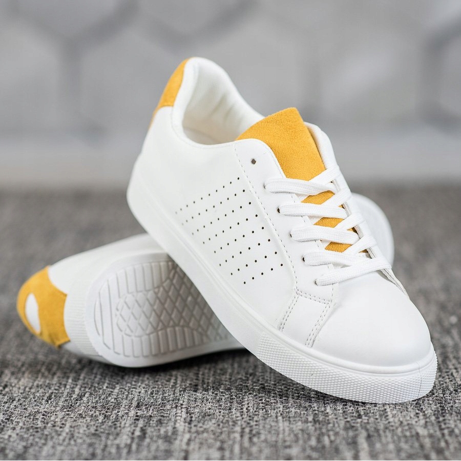 Les chaussures blanches SHELOVET avec inserts en daim sont un excellent choix pour les femmes qui souhaitent allier confort et style à la mode. Ces chaussures uniques, avec des empiècements classiques en daim blanc et élégant en daim moutarde, attireront certainement l'attention et vous permettront de vous démarquer de la foule.